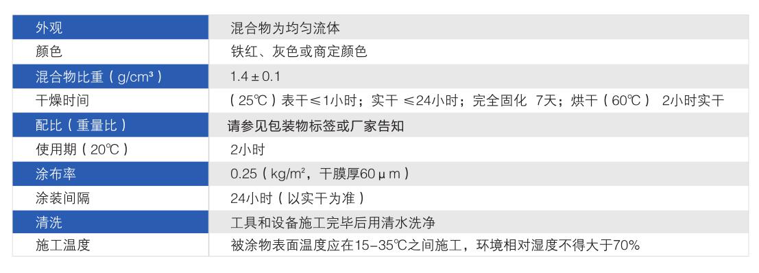 該產(chǎn)品是一種水性雙組份環(huán)氧防腐底漆,由水性環(huán)氧樹脂乳液、助劑、防銹顏填料、水性固化劑等配制而成的,甲、乙、丙組份獨立包裝。
